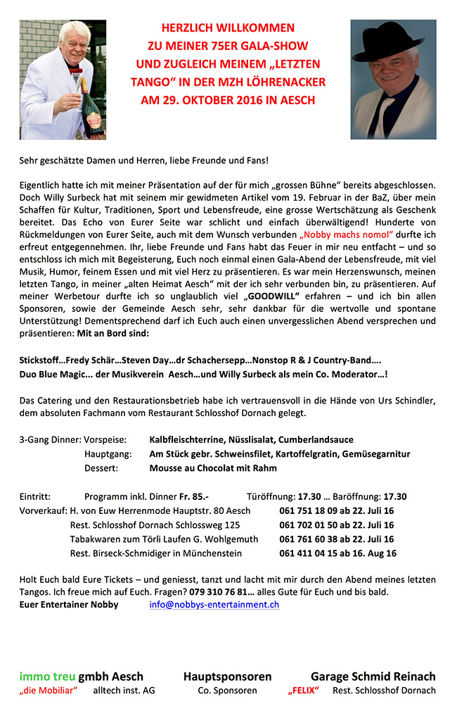 Buchen Sie Nobby und Peter für Ihren gediegenen Anlass.
